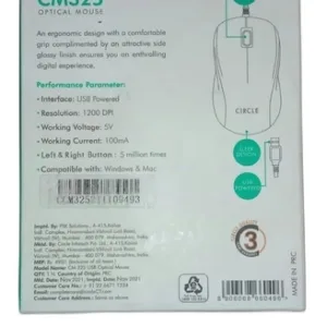 The Circle CM325 Optical Mouse is a computer mouse with optical tracking technology. It is designed for smooth and precise cursor control on various surfaces.